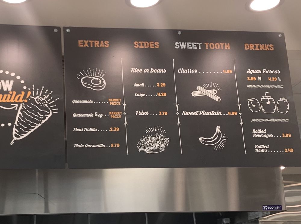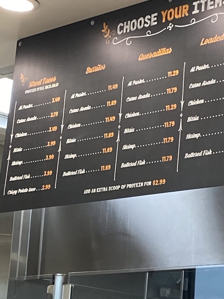 For those with heartier appetites, the variety of Burritos are also not to be missed, showcasing flavors like Al Pastor and Chicken ranging from $15.19 to $15.79. Don’t forget to complement your meal with a side of guacamole or a Plain Quesadilla for extra indulgence.
